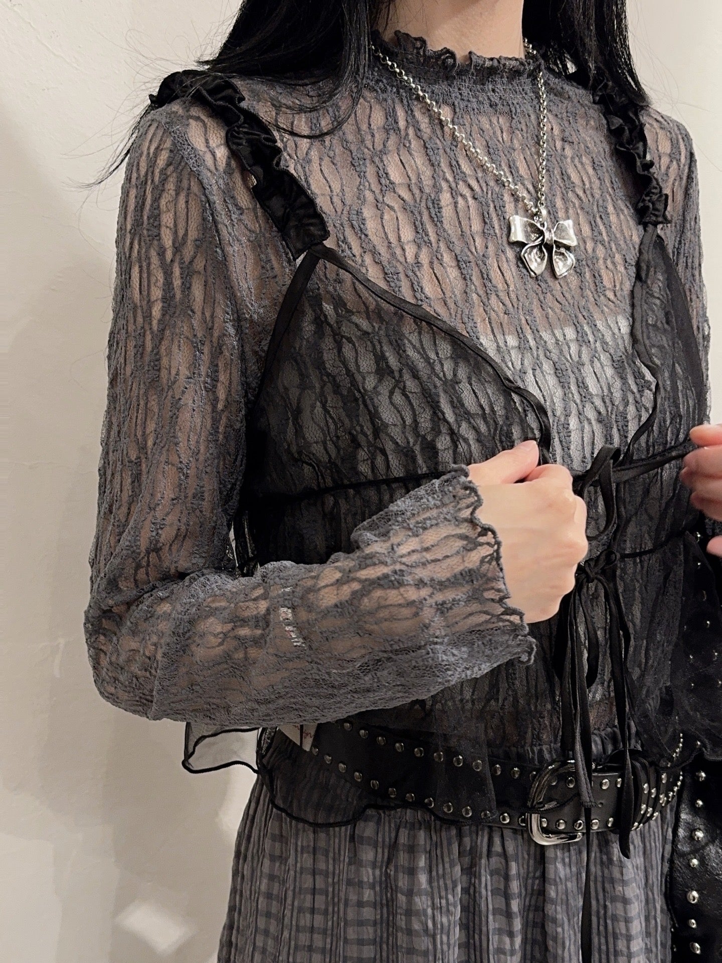 1. Lace round neck inner • charcoal