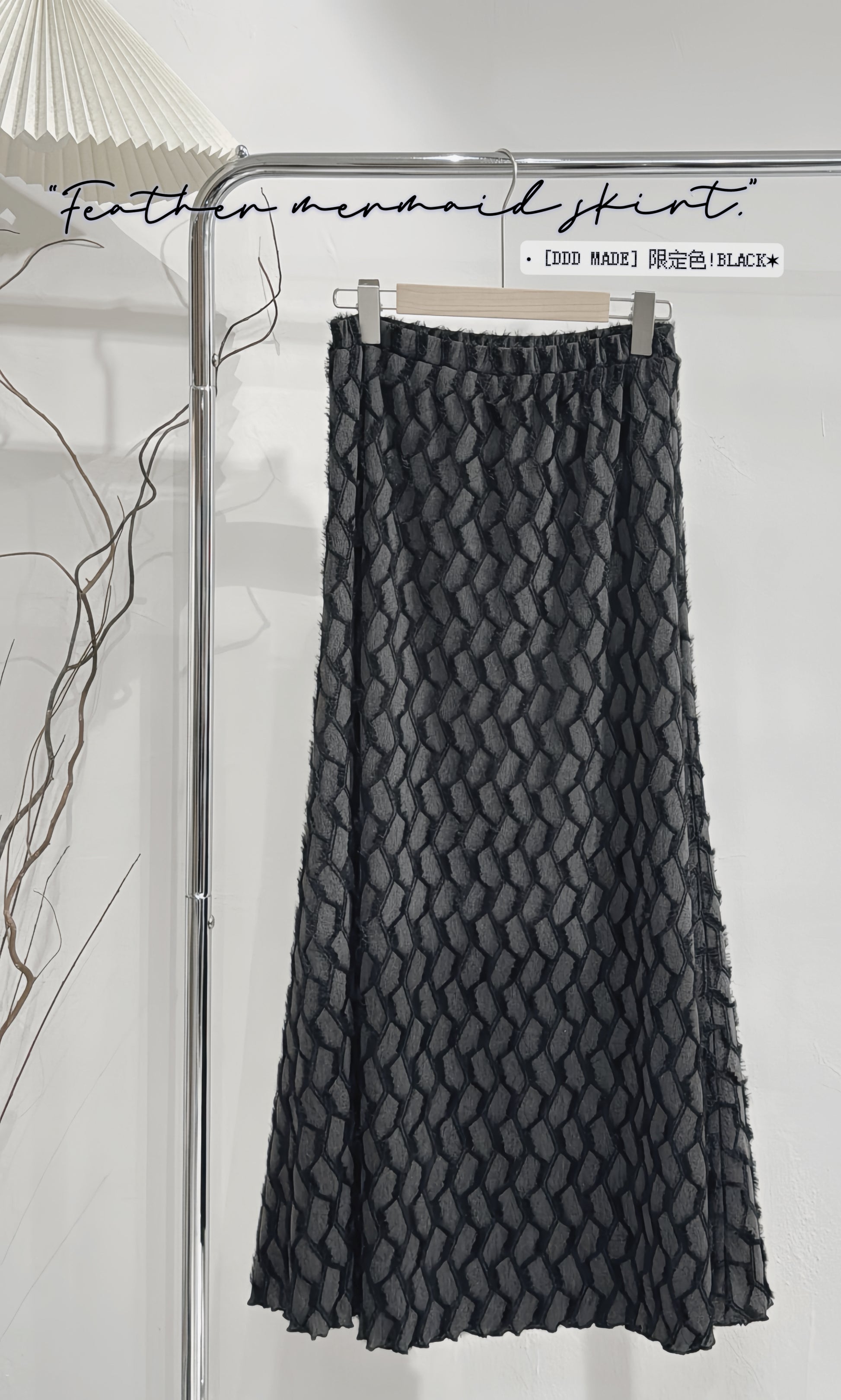 [ 第二批重做中 | 約2月頭到貨 ˚.🎀༘⋆] [ DDD MADE ] feather mermaid skirt / black
